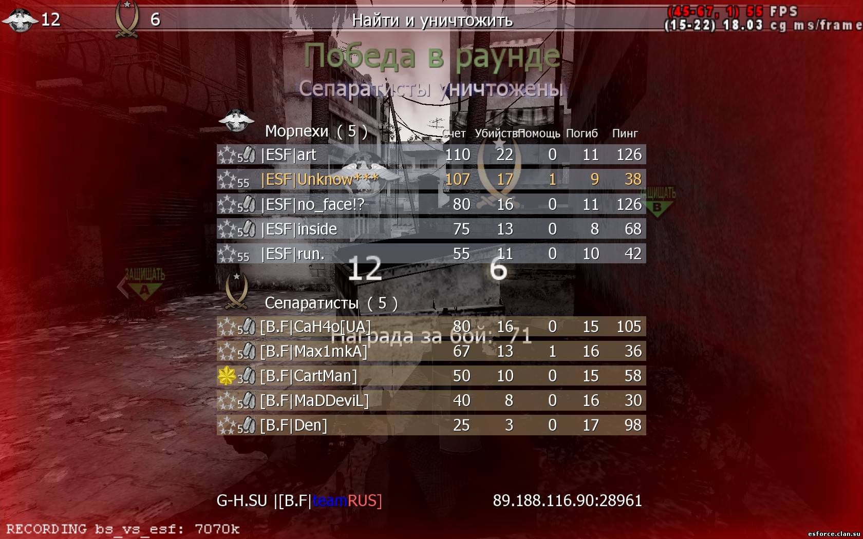 | ПОБЕДА 1.Удар 12:6 2.Ливень 7:12 Отправление 4:12 3.Офис 12:8 Ребята решили быстро покинуть карту чтобы мы неуспели сделать скрин,но мы оказались хитрей и сразу же его сделали!